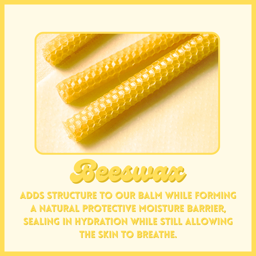 A natural protector, beeswax gives structure to the balm while sealing in hydration. It softens, smooths, and protects delicate lips from dryness and harsh elements.